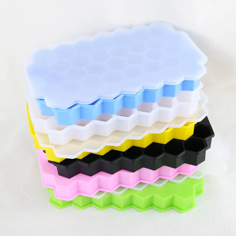 Herramienta de hacer hielo baja de la marca de encargo MOQ del logotipo con la bandeja libre del cubo de hielo del silicón de la célula del panal 37 de la categoría alimenticia del bpa de la tapa del silicón