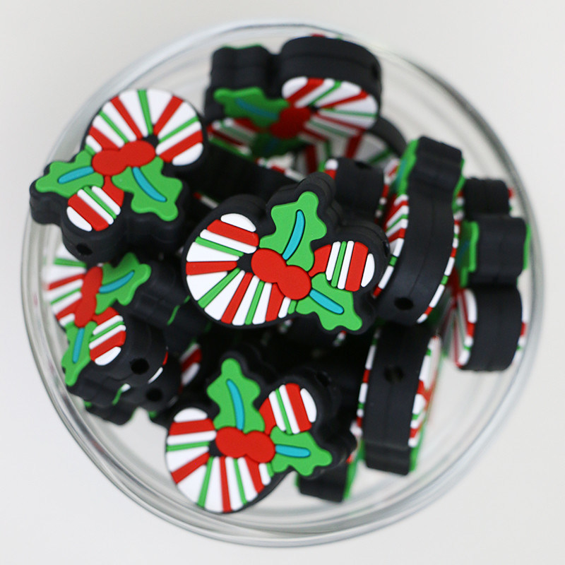 Cuentas focales de silicona personalizadas de Navidad, sin BPA, ecológicas, cuentas de bricolaje para bolígrafos y llaveros
